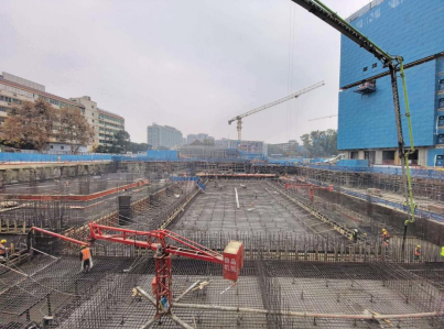 该项目作为提升干部教育培训硬件设施、传承红色教育基因的重点工程,备受社会各界关注。为确保此次筏板浇筑工作顺利推进,厂站提前谋划、精心部署,组建项目攻坚团队,全面统筹协调生产、运输、浇筑等各个关键环节。施工前,厂站重点做好冬季混凝土施工交底工作,清晰明确技术要点与质量管控标准;施工过程中,生产与技术团队紧密协同作战,管理人员全程驻场监督指导。此次施工面临场地受限的挑战,现场泵管铺设长度达180米,且需采用向下浇筑方式,施工难度显著增加。技术团队第一时间赴现场勘查研判,通过优化混凝土配合比性能,有效破解施工难题,全程实现混凝土性能稳定,未发生堵管、爆管等突发情况,最终圆满完成浇筑任务。下一步,厂站将持续高效推进后续工程建设,全力保障项目早日竣工交付。