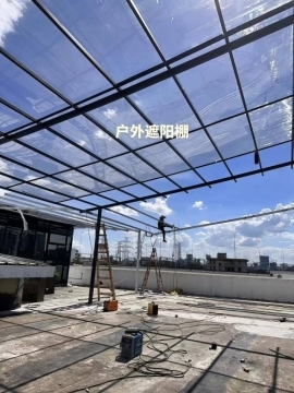 机动车棚顶棚抗冲击强度达8J/cm²,有效防御高空坠物,部分型号预留充电桩接口,适配新能源汽车充电需求。三、阳光房智能遮阳解决方案