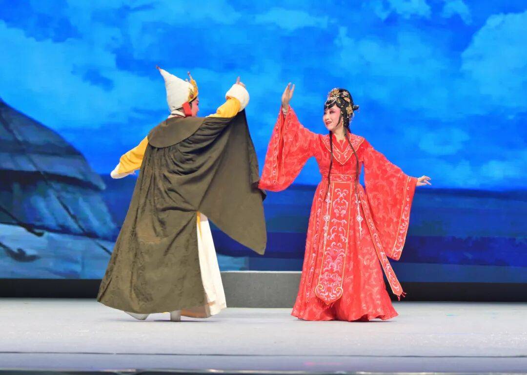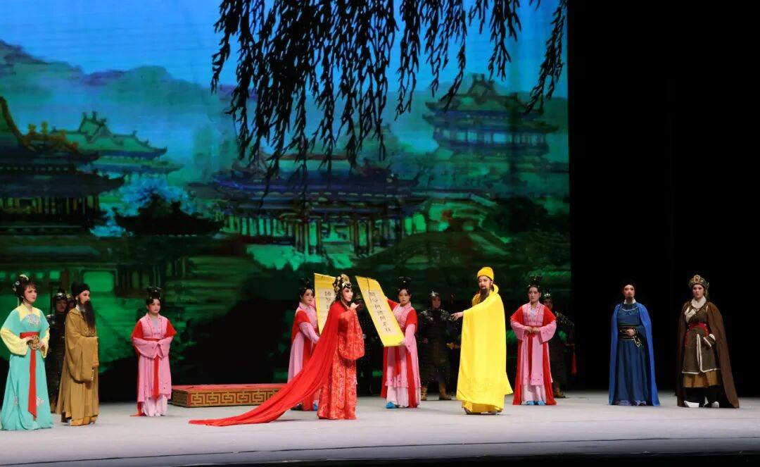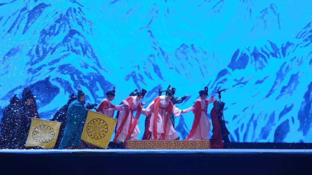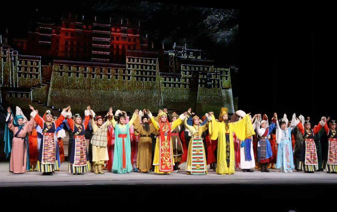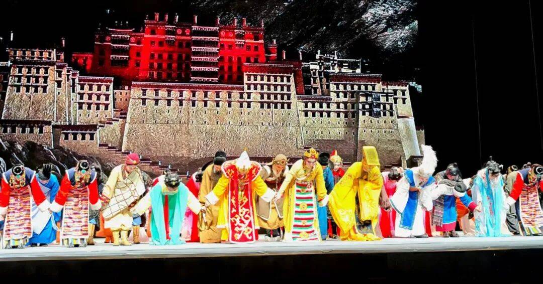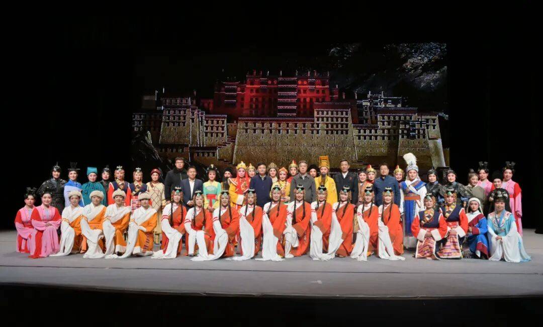 演出中,演员们恪守越剧“唱念做打”艺术精髓,以婉转悠扬的唱腔、细腻传神的表演,将文成公主的坚毅担当、松赞干布的胸襟气度刻画得入木三分。诗化的台词兼具古典意境与典故底蕴,新颖别致的落调拖腔让情感表达丝丝入扣,达成“腔从情中生,形为情点化”的艺术境界。舞台上,宏阔高远的场景设计与写意灯光相得益彰,既还原了盛唐的雍容气象,又展现了雪域高原的苍茫壮阔,配合大型舞蹈的唯美烘托,让观众沉浸式穿越千年历史长河,深切感受“中华民族一家亲”的深厚内涵。
