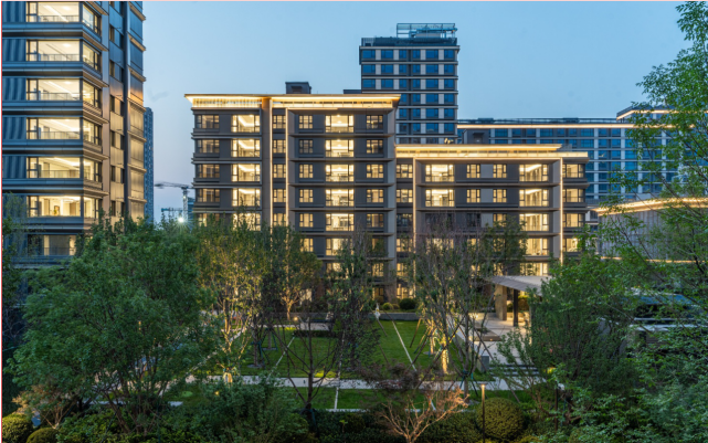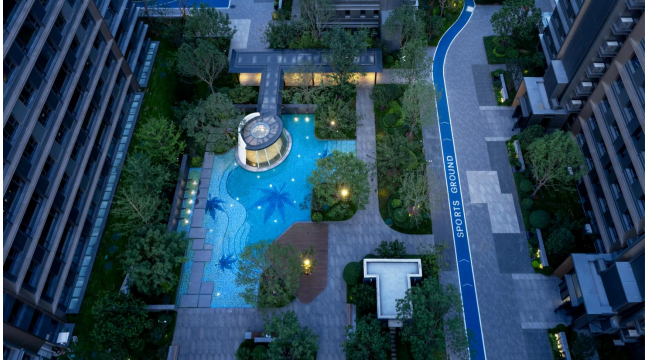 具体来看,在园林方面,项目以“瓦尔登湖”精神为蓝本,打造“一环两带七景”的实景园林,既保留了自然的静谧雅致,又构建起邻里圈层互动的第三空间。同时,搭配五重归家礼序,从社区入口的仪式感营造,到楼栋间的移步异景,为居者在都市喧嚣中开辟出一方安放身心的诗意天地。